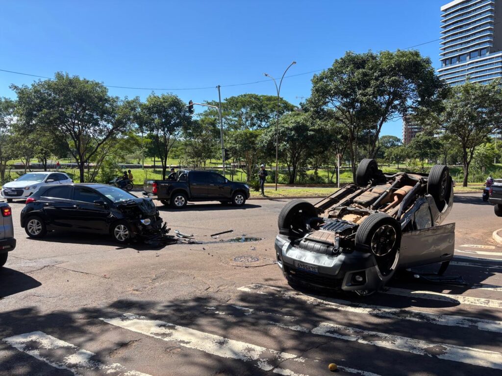 De acordo com informações apuradas no local, a condutora da S-10, identificada como Sandra Cristina, teria realizado uma conversão em local proibido e acabou atingindo o HB20, que seguia no sentido da Avenida Afonso Pena. Com o impacto, a caminhonete capotou e o outro veículo teve a parte dianteira danificada.